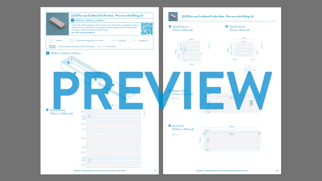 A sliding-lid cardboard pen case featuring precision-cut grooves for smooth motion. This DIY cardboard template focuses on accurate measurement and clean joinery, creating a minimalist desk accessory from upcycled materials.